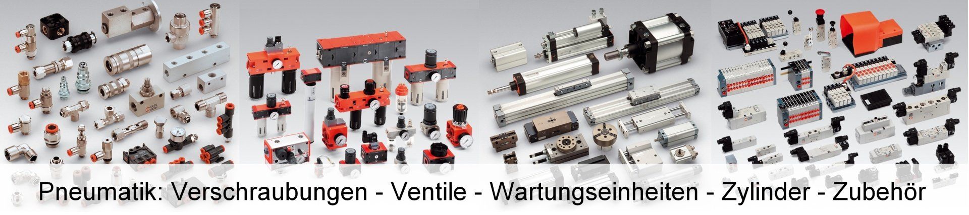 Wir können Ihnen ein umfangreiches Angebot an Zylindern, Ventilen, Ventilinseln, Verschraubungen und allen Zubehörteilen der Pneumatik anbieten. Ob Sie Ersatzteile für Ihre Anlagen und Maschinen benötigen, oder neue Anlagen entwickeln, dafür sind wir immer der richtige Ansprechpartner.